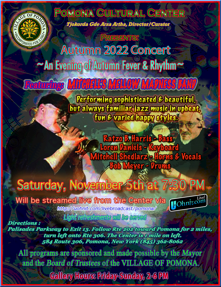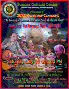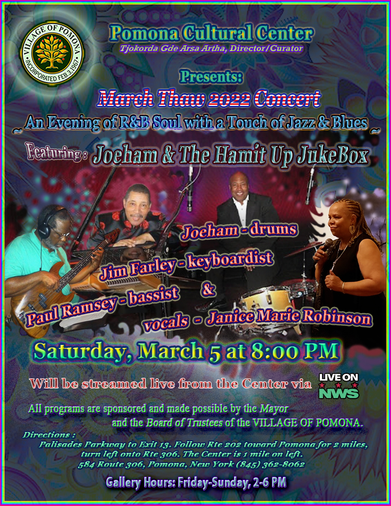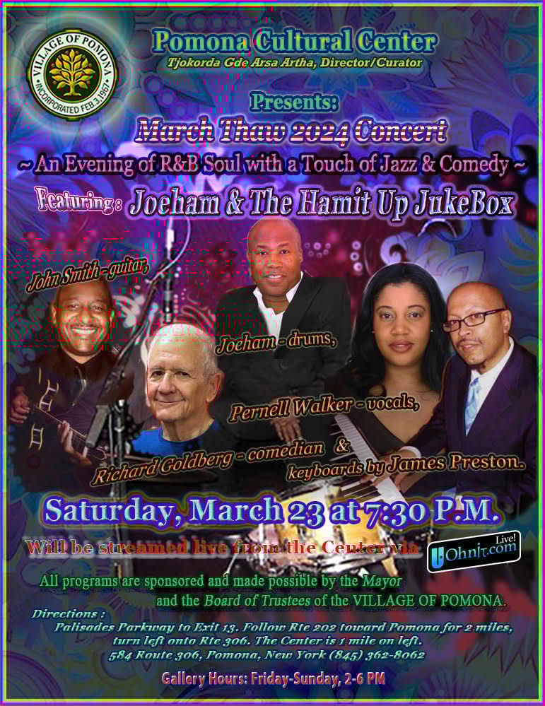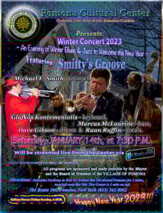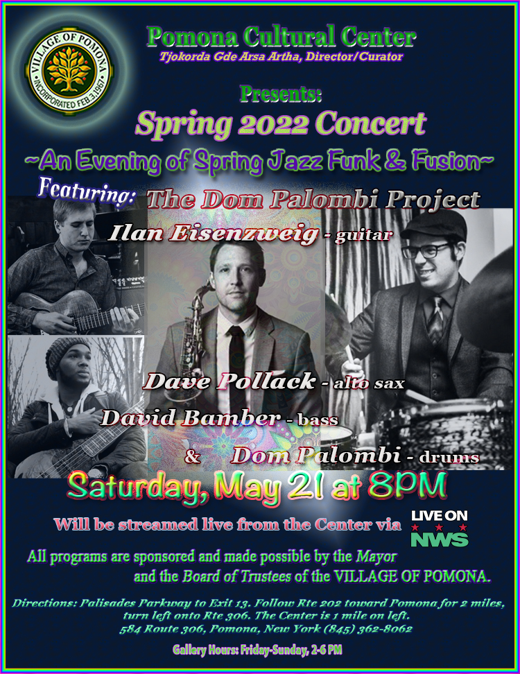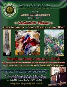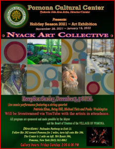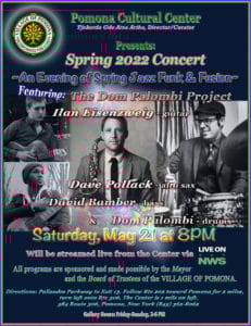 Village residents and fellow Rocklanders celebrated the joyful return to normal life at the annual spring concert on May 15th. The performance featured some talented friends and neighbors Paul Guzzone, Mary Ellen Bernard and Richard Louie along with their special guest Janie Barnett who travelled up from Brooklyn. The Pomona Cultural Center hosted an audience of 18 people who were socially distanced in the gallery while nearly 100 people around the country streamed it into their homes. The performers were surrounded by art made by our own village residents. Music and art displayed year-round at The Pomona Cultural Center shows the diversity and community of our village. Come visit!
