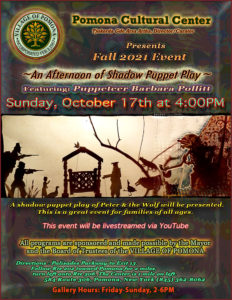 Attached is the E-card for the upcoming Fall 2021 Event ~An Afternoon of Shadow Puppet Play~ on Sunday, October 17th at 4pm https://youtu.be/YwX9LbluClo